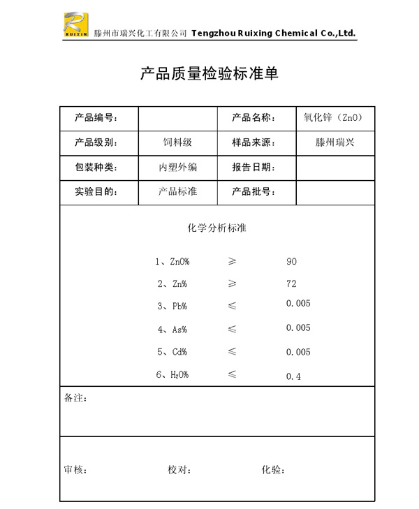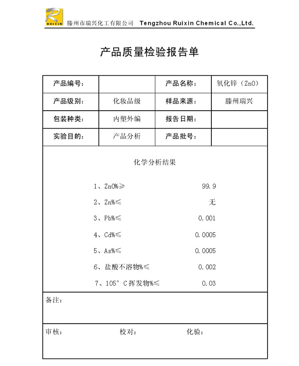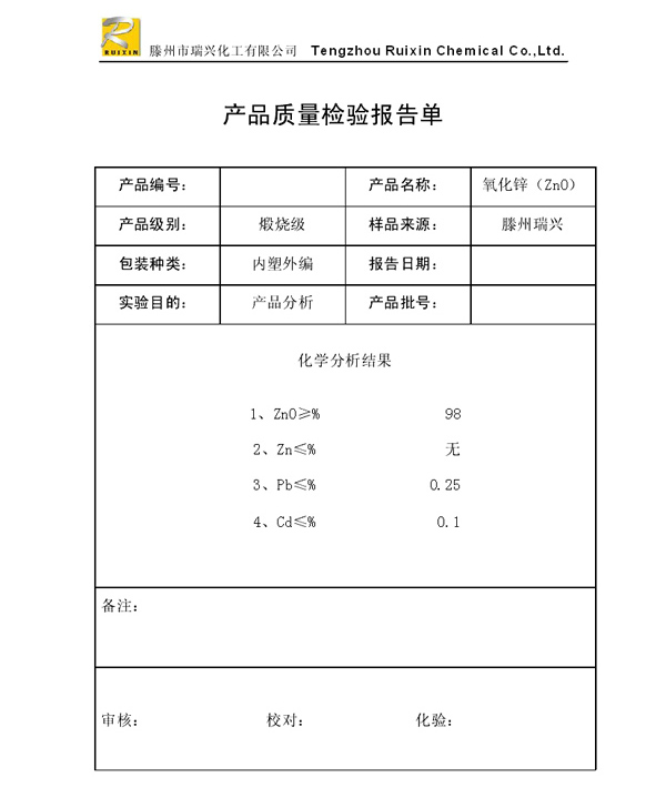 瑞興化工有限公司是生產氧化鋅的重點企業,于2008年通過ISO9001:2008質量管理體系認證?!叭鹋d”牌氧化鋅在國內擁有較大穩定的市場,并遠銷東南亞、中東、中南美等國家和地區,在國內外享有較高聲譽。